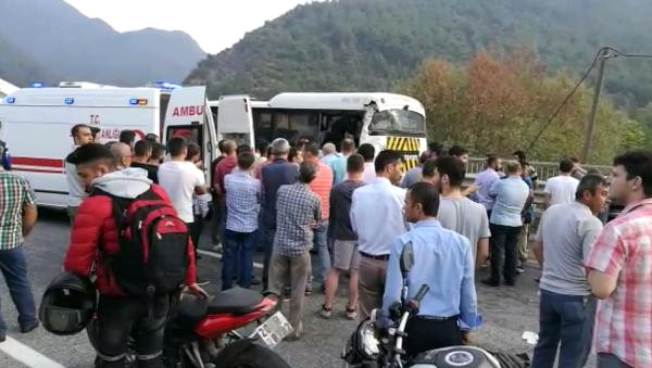 Tır, İşçi Servisine Çarpıp Devrildi: 8 Yaralı